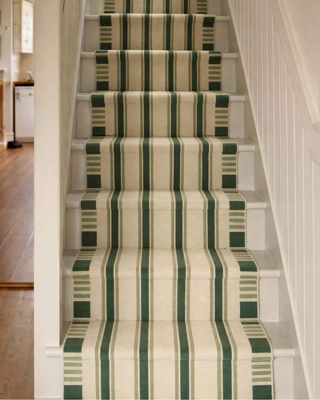 Ideal for a hallway, entryway, or staircase, its flatweave construction ensures excellent durability and a clean, refined look in high-traffic areas.
