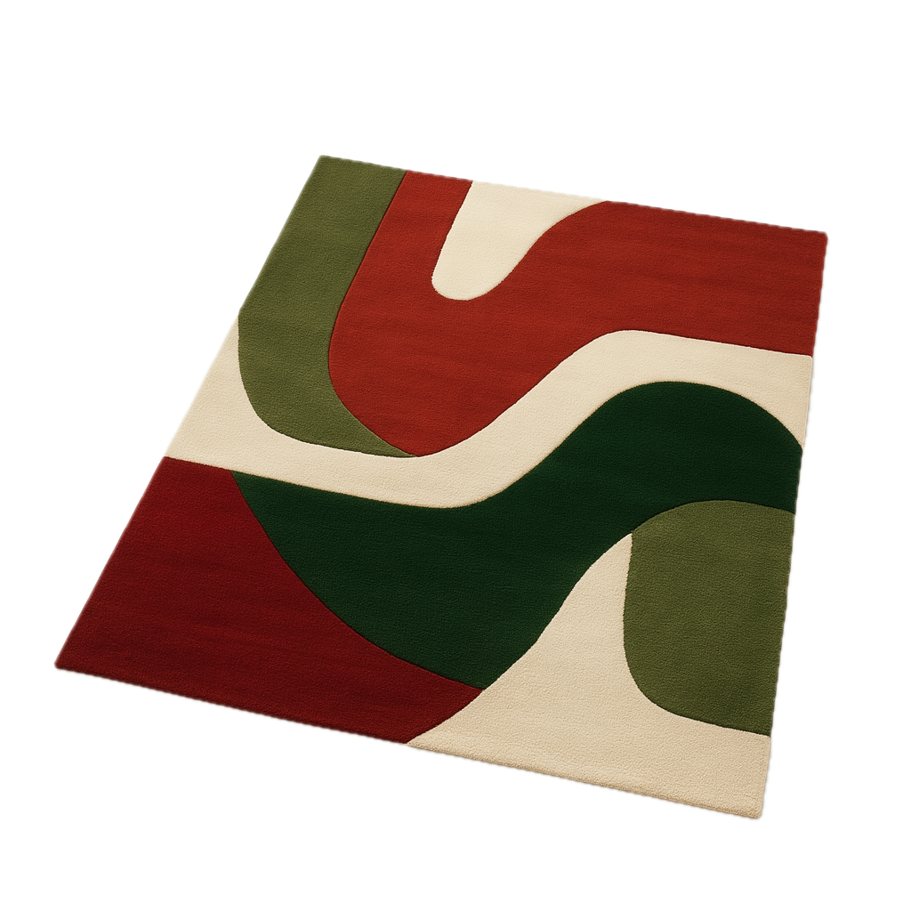 Le tapis Jazz est un modèle tufté en laine de Nouvelle-Zélande, reconnu pour sa douceur et sa qualité exceptionnelle. Son design abstrait et rythmé évoque le mouvement et l’improvisation du jazz, avec des formes ondulantes et harmonieuses dans des tons de rouge profond, vert forêt, vert olive et beige crème.